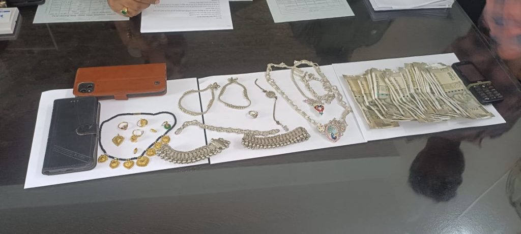 विवरण इस प्रकार हैं कि दिनांक 17-11-2022 के दरमियानी रात बगदेवा पथरापाली 02 अलग अलग घर मे तथा नवापारा लिम्हा में रात में अज्ञात चोर द्वारा (1) तीन नग मोबाईल -02 टच स्क्रीन व 1 की पेड मोबाईल ,(2) चांदी का करधन 01 जोडी (3) चांदी का पायल 01 जोडी , (4) बिछिया 01 नग (5) सोने का 01 नग लॉकेट (6) सोने का मंगलसुत्र 07 फर वाला (7) सोने का गेहूंदाना दो नग, (8) नगदी रकम 20000 रू जुमला कीमती 74000 रू चोरी कर फरार हो गये हैं कि रिपोर्ट पर थाना रतनपुर में अपराध क्रमांक 658/2022 व 659/2022 धारा 457,380 भादवि का अपराध पंजीबद्ध करने पश्चात अज्ञात चोरो की पतासाजी हेतु उमनि एवं वरिष्ठ पुलिस अधीक्षक बिलासपुर पारूल माथुर, अतिरिक्त पुलिस अधीक्षक ग्रामीण राहूल देव शर्मा एवं अनुविभागीय पुलिस अधिकारी कोटा आशीष आरोरा के निर्देशन पर थाना प्रभारी रतनपुर प्रसाद सिन्हा के नेत़ृत्व में थाना से टीम गठित कर त्वरित पतासाजी हेतु एसीसीयू से सम्पर्क कर चोरी हुये मोबाईल का लोकेशन लिया गया।