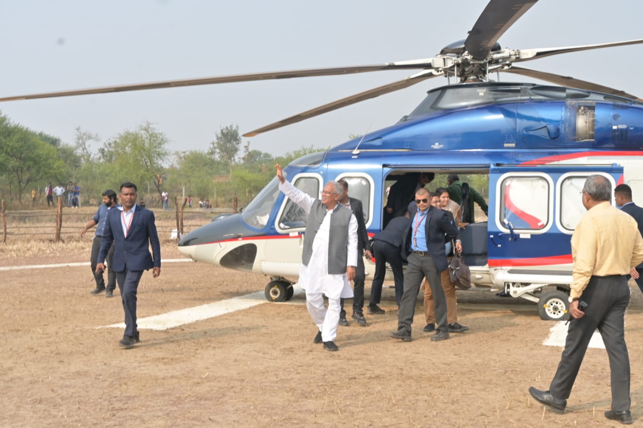 मुख्यमंत्री भूपेश बघेल भेंट-मुलाकात के लिए तखतपुर विधानसभा के ग्राम खैरी हेलीपैड पहुंचे।