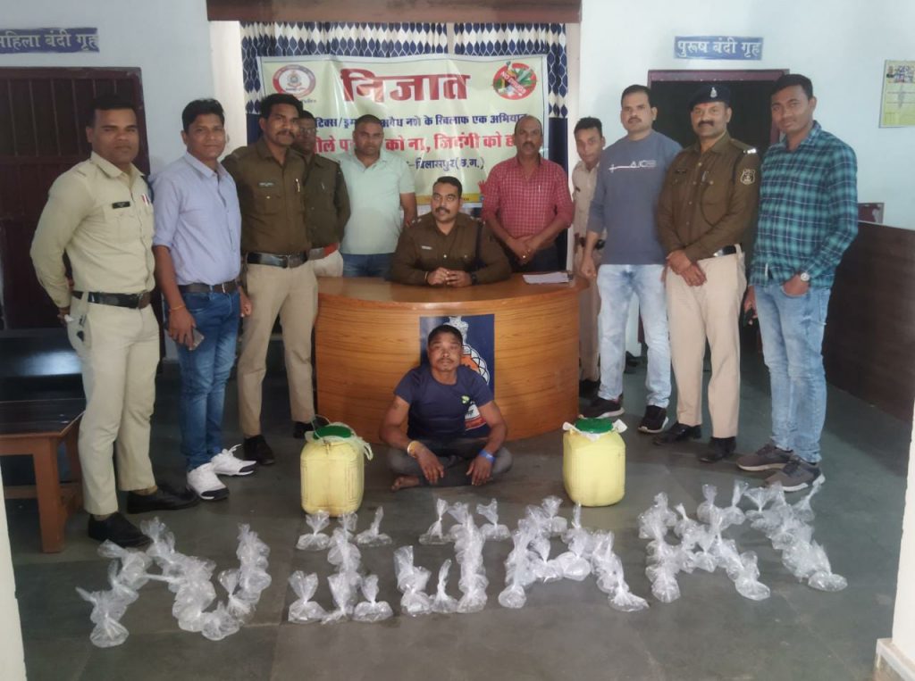 बिलासपुर। नवपदस्थ पुलिस अधीक्षक  बिलासपुर के द्वारा अवैध नशे के कारोबार तथा नशा से निजात दिलाने सभी थानो को अभियान चलाकर अवैध नशे पर लगातार कार्यवाही करने निर्देशित किया गया है इसी तारतम्य में अतिरिक्त पुलिस अधीक्षक ग्रामीण राहुल देव शर्मा एवं अनुविभागीय पुलिस अधीकारी कोटा  आशीष अरोरा के मार्गदर्शन में थाना रतनपुर पुलिस द्वारा क्षेत्र में हो रहे अवैध नशे के खिलाफ धर पकड़ अभियान लगातार चलाया जा रहा है कि आज दिनंाक 07/02/2023 को जरिये मुखबीर सूचना मिली कि ं एक व्यक्ति जो ग्राम फरहदा थाना सीपत का रहने वाला है पिछले 02 साल से अपने ससुराल खैरखुंडी में रह रहा है एवं धनवारपारा पहाड़ के पास भारी मात्रा में अवैध कच्ची महुआ शराब बना रहा है कि सूचना तस्दीक हेतु थाना प्रभारी रतनपुर द्वारा थाना स्तर पर टीम तैयार कर रेड कार्यवाही किया गया जो उक्त आरोपी के कब्जे से 180 एमएल पाउच कुल 175 नग में कच्ची महुआ शराब 31.500 लीटर,15 लीटर वाले 02 प्लास्टिक डब्बे में 30 लीटर कच्ची महुआ शराब व 15 लीटर वाली 25 नग प्लास्टिक डब्बे में महुआ लहान लगभग 400 लीटर बरामद हुआ जिसे विधिवत जप्ती एवं गिरफतारी कार्यवाही कर आरोपी के विरूद्ध धारा सदर का अपराध पंज्जीबद्ध कर विवेचना में लिया गया।अवैध नशे के कारोबारियो के खिलाफ निजात अभियान के तहत रतनपुर पुलिस की धर पकड़ कार्यवाही लगातार जारी रहेगी।उक्त कार्यवाही में कर्मचारी जिनका विशेष योगदान रहाः-थाना प्रभारी रतनपुर,स0उ0नि के0के मरकाम,आर0 क्र्र्र 859 दिपक मरावी,आर क्र 925 सचिन तिवारी,आर क्र 903 रोशन पटेल,आर क्र 1256 नंद कुमार यादव,महीला आर क्र 641 पुर्णिमा सिदार,आर क्र 1465 रामधीर टोप्पो ।