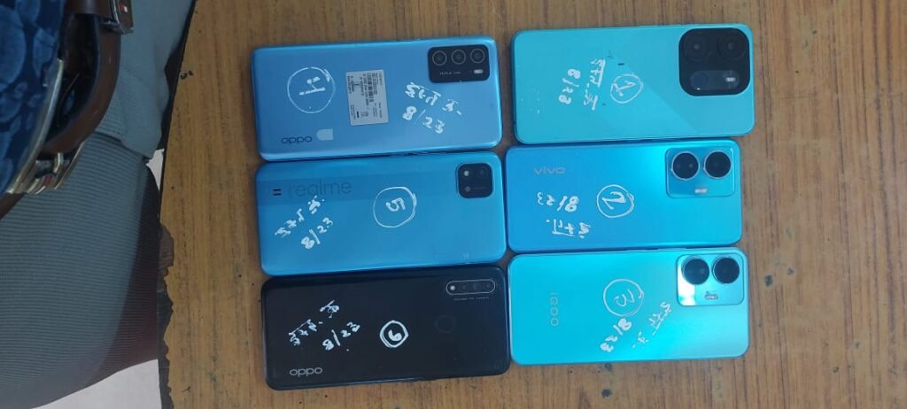 बिलासपुर।वरिष्ठ मंडल सुरक्षा आयुक्त रेलवे सुरक्षा बल बिलासपुर दिनेश सिंह तोमर सर के नेतृत्व में यात्रियों के सामान की चोरी की रोकथाम हेतु चलाए जा रहे अभियान के तहत आज दिनांक 08.05.2023 को जरिये मुखबीर सूचना मिला कि रेल्वे स्टेशन बिलासपुर सर्कुलेटिंग एरिया मुल्कराज होटल के पास एक व्यक्ति चोरी का मोबाईल विक्रय करने के लिये ग्राहक की तलाश कर रहा है कि उक्त सूचना पर थाना तोरवा बिलासपुर प्रभारी सुनील तिर्की तथा आरपीएफ बिलासपुर से निरीक्षक भास्कर सोनी एवं टीओपीबी टास्क टीम -1 प्रभारी उप निरी कुलदीप सिंह व स्टाफ के साथ रेल्वे स्टेशन एरिया मुल्कराज होटल के पास घेराबंदी कर उक्त हुलिये के व्यक्ति को पकड़कर हिरासत में लिया गया। पूछताछ करने पर अपना नाम- दीपक उर्फ अंकित साहू पिता- हेमंत साहू उम्र- 23 वर्ष निवासी – एनटीपीसी जमनी पाली इंदिरा नगर थाना -दर्री जिला- कोरबा( छत्तीसगढ़ ) बताया!जिसके कब्जे में विभिन्न कंपनियों के 06 नग एंड्राइड मोबइल किमत-