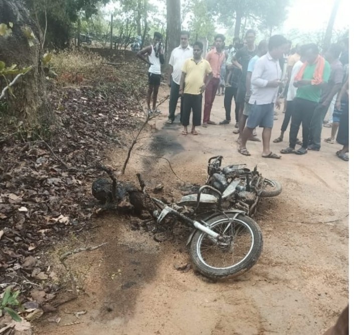 11 केवी तार टूट कर गिरने से बाइक सहित मौके पर धु धु कर जला युवक ।