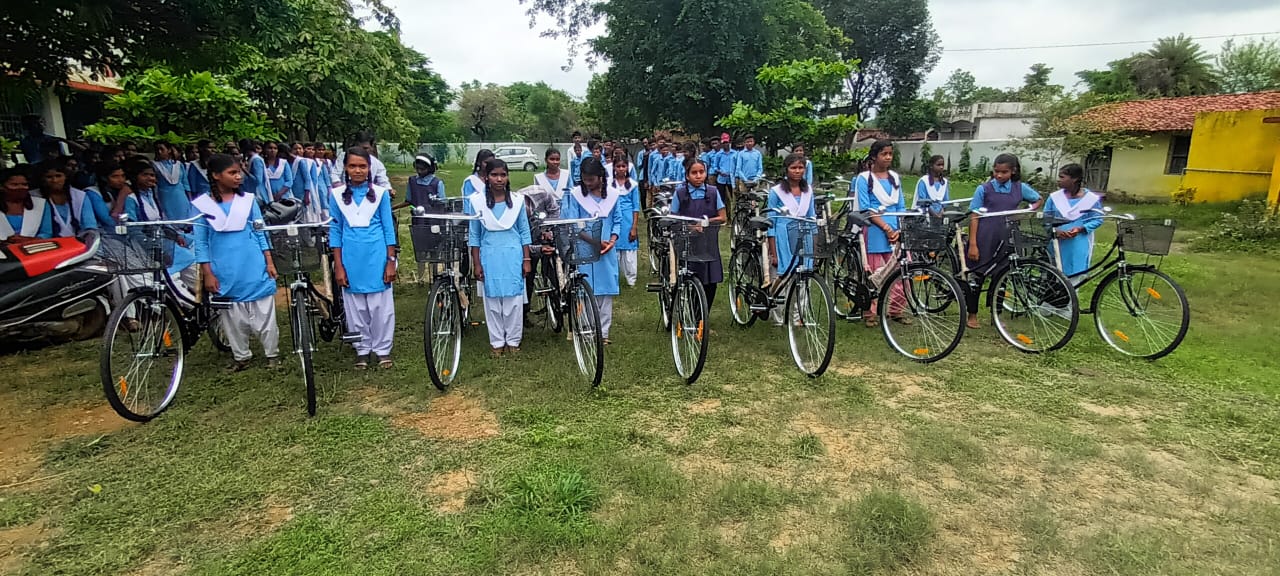 बालिका शिक्षा को समर्पित निःशुल्क सायकल वितरण योजना के तहत छात्राओं को किया गया सायकल वितरण।