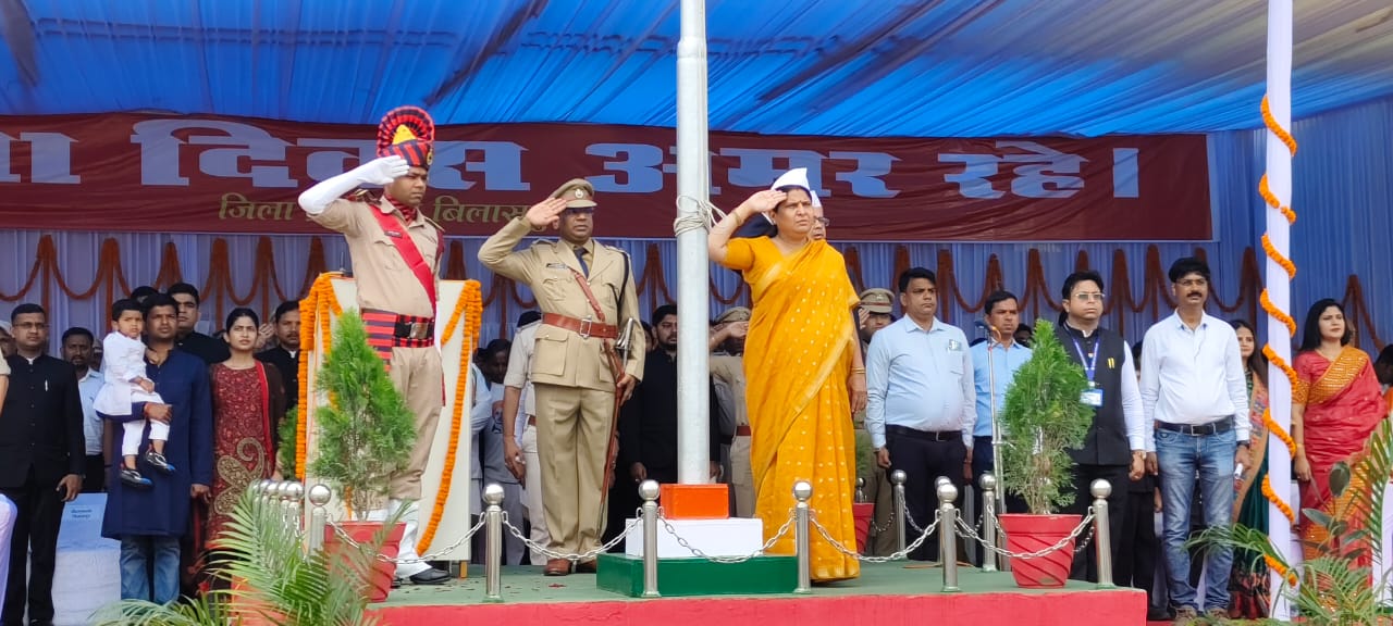 बिलासपुर, । आजादी का 77वां पर्व जिले में गरिमामय माहौल में उत्साहपूर्वक मनाया गया। मुख्य समारोह पुलिस ग्राउंड में आयोजित किया गया। संसदीय सचिव एवं तखतपुर विधायक  रश्मि आशीष सिंह ने ध्वजारोहण किया। ध्वजारोहण पश्चात राष्ट्रगान एवं परेड कमाण्डर रक्षित निरीक्षक  भूपेन्द्र गुप्ता द्वारा राष्ट्रगान की धुन पर सलामी दी गई। दर्शक अपने स्थान पर खड़े हुए तथा वर्दीधारी अधिकारियों ने सेल्यूट किया। मुख्य अतिथि ने शांति के प्रतीक सफेद कबूतर उड़ाए और हर्षोल्लास और उमंग के प्रतीक तिरंगे गुब्बारे आकाश में छोड़े। पूरे परिधान में सजे हुए 11 प्लाटूनों ने भव्य एवं आकर्षक परेड का प्रदर्शन किया। सिंह ने मुख्यमंत्री  भूपेश बघेल का प्रदेश की जनता के नाम संदेश का वाचन किया। स्वतंत्रता संग्राम सेनानी  नंदू राम भांगे को उनके घर जाकर शॉल एवं श्रीफल भेंट कर सम्मानित किया गया। इस अवसर पर नक्सल हिंसा में शहीद हुए जवानों के परिजनों को भी शॉल एवं श्रीफल देकर सम्मानित किया गया। जिले में उत्कृष्ट गोठान का पुरस्कार कोटा विकासखण्ड के शिवतराई गोठान, मस्तूरी ब्लॉक के जुहली, तखतपुर ब्लॉक के बेलपान एवं बिल्हा ब्लॉक के पौंसरी को दिया गया। इन उत्कृष्ट गोठानों को संचालित करने वाले स्व सहायता समूहों को प्रशस्ति पत्र एवं 25 हजार रूपये का नगद पुरस्कार देकर सम्मानित किया गया। मुख्य अतिथि ने शासकीय कार्याें एवं दायित्वों के उत्कृष्ट निर्वहन के लिए विभिन्न विभागों में कार्यरत 38 अधिकारियों एवं कर्मचारियों को प्रशस्ति पत्र प्रदान कर सम्मानित किया।समारोह में स्कूली बच्चों के द्वारा दी गई रंगारंग सांस्कृतिक कार्यक्रमों की प्रस्तुति दी गई। सांस्कृतिक कार्यक्रमों में स्वामी आत्मानंद महारानी लक्ष्मी बाई कन्या शाला ने पहला स्थान हासिल किया वहीं दूसरा स्थान मोहंती उच्चतर माध्यमिक शाला के बच्चों ने और तीसरा स्थान स्वामी आत्मानंद उच्चतर माध्यमिक शाला चिंगराजपारा ने प्राप्त किया।कार्यक्रम में महापौर  रामशरण यादव, जिला पंचायत अध्यक्ष  अरुण सिंह चौहान, छत्तीसगढ़ पर्यटन मंडल के अध्यक्ष  अटल श्रीवास्तव, नगर निगम सभापति  शेख नजरूद्दीन, अरपा विकास प्राधिकरण के उपाध्यक्ष  अभयनारायण राय, जिला सहकारी बैक के अध्यक्ष  प्रमोद नायक, संभाग आयुक्त  केडी कुंजाम, आईजी  आनंद छाबड़ा, कलेक्टर  संजीव कुमार झा, वरिष्ठ पुलिस अधीक्षक  संतोष कुमार सिंह, एडीएम  आर ए कुरूवंशी, नगर निगम कमिश्नर  कुणाल दुदावत, जिला पंचायत के मुख्य कार्यपालन अधिकारी अजयअग्रवाल,  विजय केशरवानी, विजय पाण्डेय सहित अन्य जनप्रतिनिधि व अधिकारी, कर्मचारी तथा गणमान्य नागरिक उपस्थित थे।