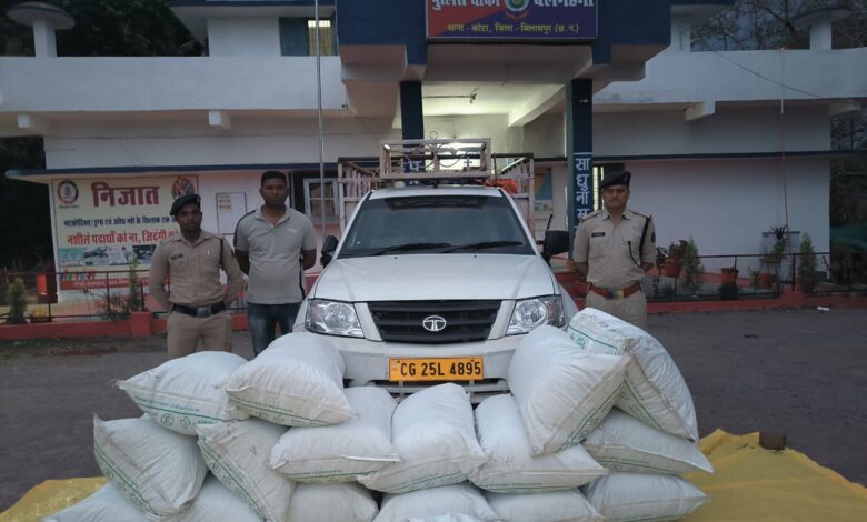 की सूचना पर पुलिस अधीक्षक संतोष सिंह को अवगत करा कर अति पुलिस अधीक्षक राहुल देव शर्मा एवम एसडीओपी कोटा सिद्धार्थ बघेल के दिशा निर्देश पर पिकअप के आने वाले संभावित रास्ते में मोबाइल चेकप्वाइंट लगाकर चेकिंग की जा रही थी चेकिंग की भनक पाकर आरोपी अपने वाहन को उक्त रास्ते में न लाकर कुछ दूर पूर्व से ही दूसरे रास्ते ले जाकर ग्राम बरर जंगल की ओर छोड़कर भाग गया जिसे मुखबिर की सूचना पर मौके पर हमराह स्टाफ और गवाहों के पहुंचकर एनडीपीएस के प्रावधानों के तहत विधिवत कार्यवाही करते हुए उक्त पिकअप वाहन से 7 बोरियों में एक एक किलो का पैकेट बना प्रत्येक बोरी में 35/35 पैकेट भरा हुआ कुल जुमला वजनी 244 किलो 800 ग्राम एवं पिकअप वाहन को विधिवत जप्त कर अपराध पंजीबद्ध कर आरोपी वाहन चालक की पतासाजी हेतु वाहन मालिक के पते पर पुलिस पार्टी भेजी गई है इस कार्यवाही में चौकी प्रभारी उपनिरीक्षक ओपी कुर्रे के हमराह में प्रधान आरक्षक घनश्याम आदिल आरक्षक सत्येंद्र राजपूत, ईश्वर नेताम आरक्षक, राकेश पोर्ते का योगदान रहा ।
