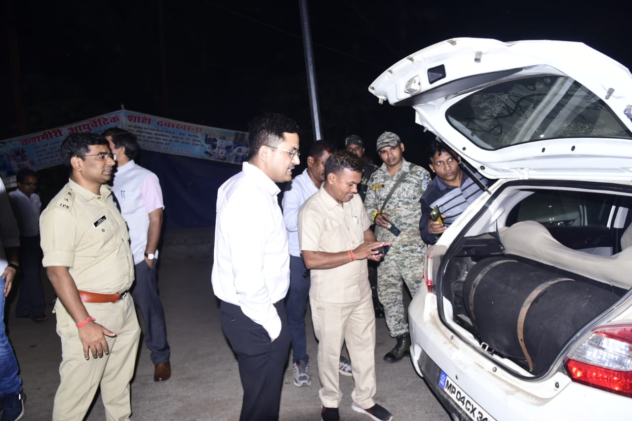 कलेक्टर-एसपी ने रात में किया नाकों में तैनात एसएसटी टीम का निरीक्षण,सड़क में उतरकर स्वयं कई वाहनों की जांच ।