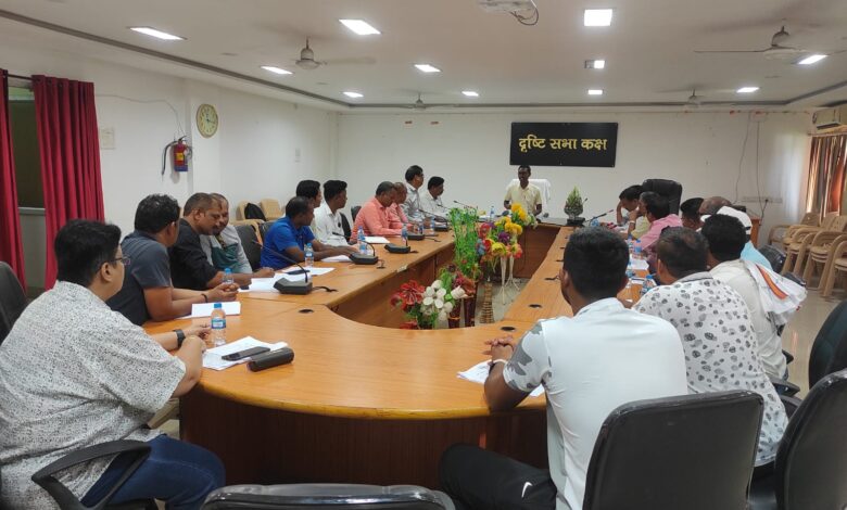 बिलासपुर। छ.ग. शासन खेल एवं युवा कल्याण विभाग के निर्देशानुसार खिलाड़ियों को खेल एवं स्वास्थ के प्रति प्रेरित करने तथा जिले में ओलम्पिक खेलों को बढ़ावा देने के उद्देश्य से अवनीश शरण जिला कलेक्टर एवं अमित कुमार, आयुक्त नगर पालिक निगम बिलासपुर के मार्ग निर्देशन में जिला बिलासपुर के 12 स्थानों पर 12 खेलों का ग्रीष्मकालीन खेल प्रशिक्षण शिविर आयोजित किया जा रहा है। ग्रीष्मकालीन खेल प्रशिक्षण शिविर 2024-25 के आयोजन के सम्बन्ध में दिनांक 16.05.2024 को खजान्ची कुम्हार, अपर आयुक्त, नगर पालिक निगम बिलासपुर की अध्यक्षता में नगर पालिक भवन के दृष्टि सभा कक्ष में बैठक ली गई। बैठक में एथलेटिक, हॉकी, तीरंदाजी, कबड्डी, तैराकी, जूड़ो, फुटबॉल, बास्केटबॉल, बेसबॉल, व्हॉलीबॉल, ताईक्वान्डो एवं खो-खो खेलो के लिए प्रशिक्षण शिविर दिनांक 21.05.2024 से 10.06.2024 तक (21 दिवस) खेल विशेषज्ञो के द्वारा प्रतिदिन प्रातः 06.00-08.00 बजे तक (02 घण्टे) एवं सायं 05.00-07.00 बजे (02 घण्टे) तक दिये जाने का निर्णय लिया गया है।