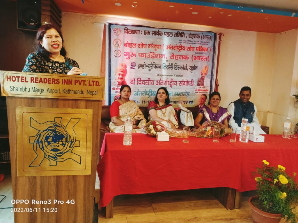 काठमांडू नेपाल में आयोजित अंतर्राष्ट्रीय सेमिनार में शासकीय पातालेश्वर महाविद्यालय, मस्तूरी के राजनीति विज्ञान की सहायक प्राध्यापक श्रीमती कांति अंचल को उत्कृष्ट शोध आलेख के लिये मंच पर उनका सम्मान किया गया।