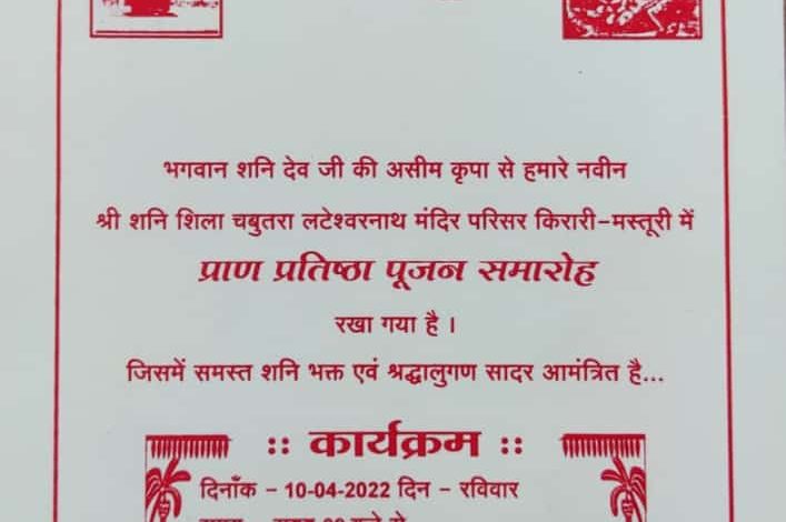 मस्तूरी। किरारी स्थित लटेश्वरनाथ मंदिर परिसर में आज दिनांक 10/4/ 2022 दिन रविवार को श्री शनि धाम समिति किरारी के द्वारा श्री शनि शीला चबूतरा का आज विधिवत पूजा अर्चना के साथ प्राण प्रतिष्ठा पूजन समारोह रखा गया है जिसमें मस्तूरी क्षेत्र सहित आसपास के श्रद्धालु भारी संख्या में उपस्थित रहेंगे।