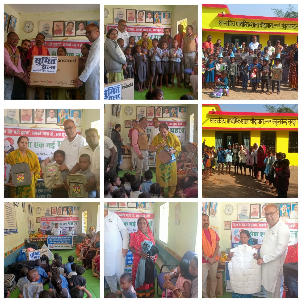 बिलासपुर कोटा। आज शासकीय प्राथमिक शाला चांदापारा में सेवा एक नई पहल संस्था से आदरणीय श्री सतराम भईया,श्रीमती रेशु दीदी ,श्री विष्णु जी का आगमन हुआ । इस बीच हमारे खरगहनी के सरपंच प्रतिनिधि श्री राजेश जी, उपसरपंच श्रीमती लक्ष्मी देशवार जी, संकुल समन्वयक श्री मणिकांत मिश्रा, मितानिन दीदी, smc उपाध्यक्ष व बड़ी संख्या में ग्रामीण जन उपस्थित रहे।सेवा एक नई पहल के माध्यम से स्कूल को सहयोग स्वरूप LED , विद्यालय में दर्ज 27 बच्चों के लिए स्वेटर, स्कूल बैग, ग्रामीण जनो के लिए कंबल, स्वेटर, कपड़े, जूता चप्पल, खिलौने, चॉकलेट आदि प्राप्त हुए। विशेष रूप मैं और मेरा शाला परिवार चांदापारा की ओर से आदरणीया श्रीमती रेखा आहूजा दीदी को धन्यवाद देना चाहती हूं जिसकी वजह से ये सब संभव हो पाया है । आपके इस सहयोग के लिए शाला परिवार आपका और आपके संस्था के सभी सदस्यों का हृदय से आभार व्यक्त करती है । बच्चे बैग, स्वेटर, और चॉकलेट पाकर अत्यधिक खुश हुए, इस बीच शाला के सभी शिक्षक उपस्थित रहे। पुनः आदरणीय श्री सतराम भईया जी, आदरणीया रेखा आहूजा दीदी जी, आदरणीया श्रीमती रेशु दीदी को आभार व्यक्त किया गया।