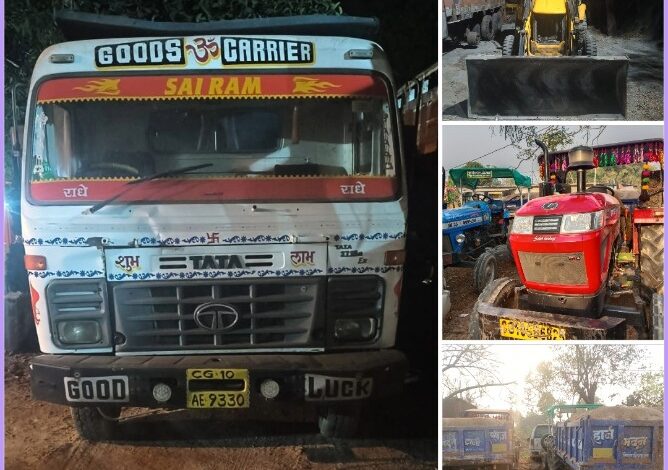खनिजों के अवैध उत्खनन व परिवहन पर 01 जेसीबी, 04 हाइवा व 02 ट्रेक्टर ट्राली सहित 07 वाहन जप्त।