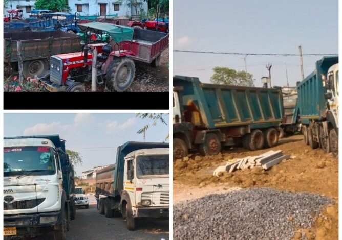 खनिजो के अवैध उतखनन व परिवहन पर 14 ट्रेक्टर ट्राली, 05 हाइवा व 01 पोकलेन मशीन व 01 जे सी बी मशीन जप्त।