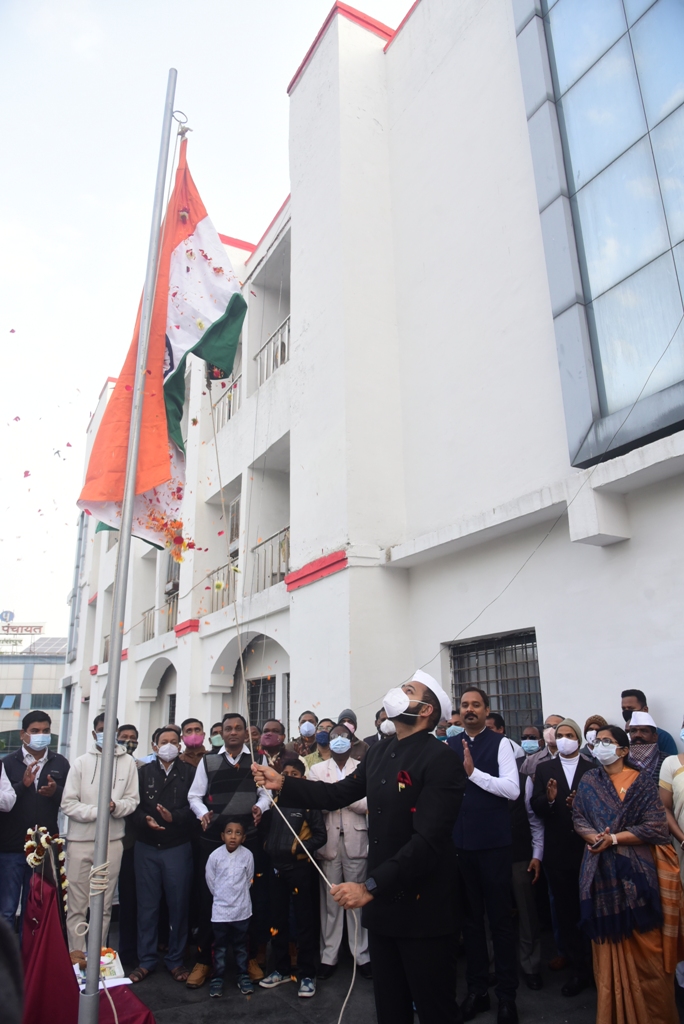 बिलासपुर । कलेक्टर डॉ. सारांश मित्तर ने गणतंत्र दिवस 26 जनवरी 2022 के अवसर पर पुराने कम्पोजिट बिल्डिंग में प्रातः 7.30 बजे एवं नए कम्पोजिट बिल्डिंग में प्रातः 7.40 बजे तथा जिला कार्यालय परिसर में प्रातः 8 बजे ध्वजारोहण किया। उन्होंने कलेक्टोरेट परिसर स्थित महात्मा गांधी जी के मूर्ति पर भी माल्यार्पण किया। इस मौके पर ’’जन-गण-मन’’ राष्ट्रगान गाया गया एवं भारत माता की जय एवं गणतंत्र दिवस अमर रहे के नारे लगाये गये।