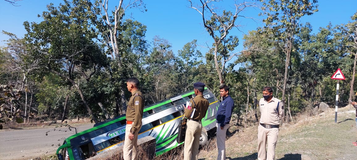 पेंड्रा रतनपुर मार्ग पर स्थित  बंजारी घाट में कानपुर से बिलासपुर जा रही रितिका ट्रैवल्स लगभग सुबह 9 30 बजे जब केंदा घाटी पहुची थी और अनियंत्रित होकर दुर्घटनाग्रस्त हो गई घटना की जानकारी होने के बाद मौके पर गौरेला पुलिस एवं  बेलगहना पुलिस स्टाफ मौके पहुंंच कर लोगों की मदद से घायलों को उपचार के लिए जिला चिकित्सालय पेंड्रा एवं सामुदायिक स्वास्थ्य केंद्र पेंड्रा भेजा केंद्र पहुंचे घायलों में से कुछ को ज्यादा चोट होने की वजह से बिलासपुर सिम्स के लिए रिफर कर दिया गया है वही जिला चिकित्सालय में भी घायलों का इलाज जारी है… ज्यादातर घायलों को हेड इंजरी है वही एक घायल का पैर भी टूट गया है… वही घायलों की माने तो जब बस घाटी से उतर रही थी तो बस चालक बस को मोड़ नही पाया और बस सीधे खाई में जा गिरी।और हादसा हो गया ।