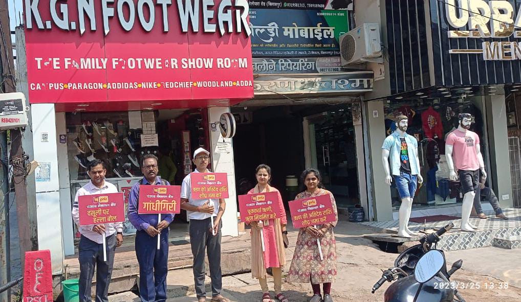 बिलासपुर।पंजाब नैशनल बैंक द्वारा आज पूरे देश मे चल रहे विशेष ऋण वसूली अभियान के परिपेक्ष्य में छत्तीसगढ़ के सभी जिलों में ऋण वसूली तथा एकमुश्त समझौता अभियान बड़ी जोर शोर से चलाया गया। मिलिंद खानखोजे, बिलासपुर मंडल प्रमुख ने स्वयं कोरबा से कमान सँभाली तो उपमंडल प्रमुख श्याम प्रकाश वर्मा ने सुदूर अम्बिकापुर में वसूली अभियान का नेतृत्व किया। बिलासपुर शहर की जिम्मेदारी मुख्यप्रबन्धक कैलाश झा, राजेश कुमार एवं ललित अग्रवाल सहित समस्त शाखा प्रबन्धकों को दी गई। सुबह 9 बजे से ही बैनर लगाकर विशेष वसूली अभियान की प्री रिकॉडिंग बजाते हुए पीएनबी अधिकारी सड़कों पर प्ले कार्ड लेकर शांति मार्च किया। मंडल प्रमुख मिलिंद खानखोजे ने बताया कि बैंकों में आमजनता की जमाराशियों को ही ऋणों के रूप में स्वीकृत कर देश की अर्थव्यवस्था को आगे बढ़ाने में सहयोग किया जाता हैं। कभी कभी प्रतिकूल परिस्थिति के कारण कुछ ऋण एनपीए डिफाल्टरों की श्रेणी में आ जाते हैं। ऐसे कमजोर तथा ऋण मुक्त होने के इक्छुक जागरूक हितग्राहियो को मदद हेतु पीएनबी द्वारा अच्छी खासी छूट देते हुए एकमुश्त समझौता किया जा रहा हैं।बिलासपुर में मुख्यप्रबन्धक कैलाश झा, राजेश कुमार एवं ललित अग्रवाल, गजानन्द राठौड़, राधेश्याम धुर्वे, उमाकांत मेहेर, निधि काम्बले, अमित कुमार, कमलेश्वर सिंह, नेहा गुप्ता, आनंद कुमार सहित बड़ी सँख्या में बैंक अधिकारी अभी तक फील्ड में ऋण वसूली व एकमुश्त समझौता व ई ओटीएस करने हेतु चक्कर लगा रहे है।