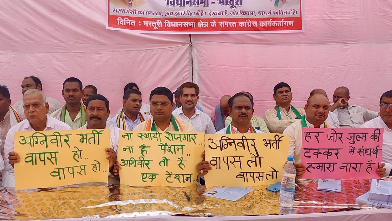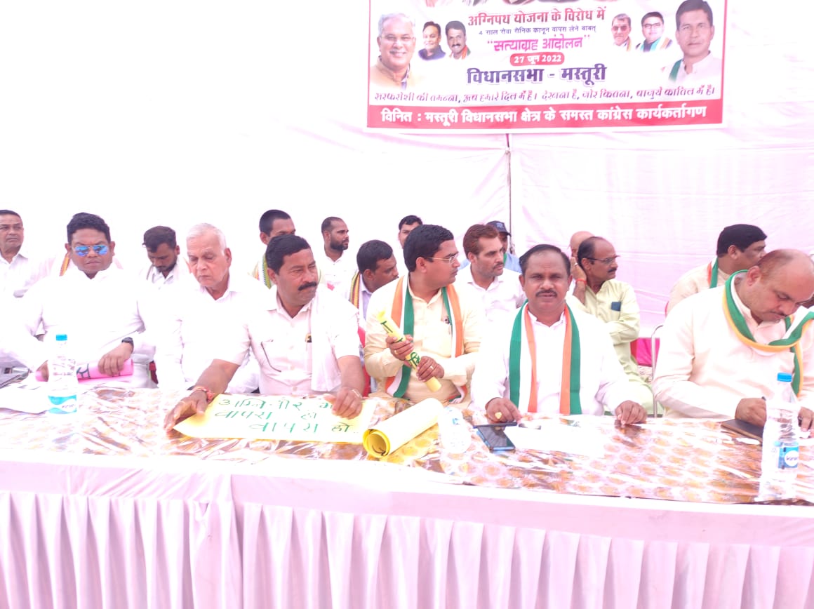 मस्तूरी। केंद्र के मोदी सरकार द्वारा अग्निपथ भर्ती के विरोध में अखिल भारतीय कांग्रेस कमेटी के निर्देशानुसार व प्रदेश कांग्रेस कमेटी के आह्वान पर विधानसभा स्तरीय एक दिवसीय धरना प्रदर्शन आज जोंधरा चौक मस्तूरी में किया जाएगा इस कार्यक्रम में प्रदेश कांग्रेस कमेटी द्वारा नियुक्त प्रभारी दिलीप लहरिया (पूर्व विधायक मस्तूरी) विशेष रूप से उपस्थित रहें ।अतः ब्लॉक कांग्रेस कमेटी मस्तूरी एवं ब्लॉक कांग्रेस कमेटी सीपत के समस्त सम्मानीय पदाधिकारी गण, वरिष्ठजन सभी जोन अध्यक्ष, सेक्टर अध्यक्ष, बूथ अध्यक्ष, युवा कांग्रेस, महिला कांग्रेस, एनएसयूआई, आईटी सेल, पिछड़ा वर्ग,इंटक कांग्रेस, किसान कांग्रेस, सेवादल, पिछड़ा वर्ग कांग्रेस, व्यापार प्रकोष्ठ, झुग्गी झोपड़ी प्रकोष्ठ सहित सभी पदाधिकारी अधिक संख्या में उपस्थित रहें।सभा को संबोधित करते हुए प्रभारी पुर्व विधायक दिलीप लहरिया ने कहा कि केंद्र में बैठे मोदी सरकार युवाओं को ठगने का कार्य कर रही है जिसका नतीजा आगामी चुनाव दिखेगा।आज का सत्याग्रह आंदोलन सुबह 11बजे से 2बजे तक जोंधरा चौक में चला।कार्यक्रम में मंच संचालन चित्रकांत श्रीवास ने किया व अभार व्यक्त अखिलेश दुबे ने किया।आज के इस सत्याग्रह आंदोलन में मंचसव नागेंद्र राय, राजेंद्र धीवर, राजेश्वर भार्गव ,राजकुमार अंचल, प्रेमचंद जायसी, कौशल पांडे, वीरेंद्र शर्मा, शंकर यादव, दुबे सिंह, संतोष दुबे, व्यास नारायण तिवारी, प्रमोद जायसवाल, रघुराज पांडे, किरण यादव, अशोक रजवाल, सुकृत खुटें,दामोदर कांत, सुभाष टंडन, रामायण पटेल, कौशल जगत, कृष्ण कुमार, घासीराम, उमेश चंद्राकर ,दुर्गा तिवारी, अशोक सूर्यवंशी, रामेश्वर साहू , विजय नामदेव, अरविंद लहरिया, पिंटू जांगड़े, लखन टंडन ,नेतराम टंडन, देवेंद्र कृष्णन, मनोज ,वीरेंद्र ,मोहित टंडन, देवेंद्र पटेल, अमित पांडे ,उमेश, रामफल, विश्वजीत, पुष्पेन्द्र, आदि कांग्रेसि उपस्थित रहे।
