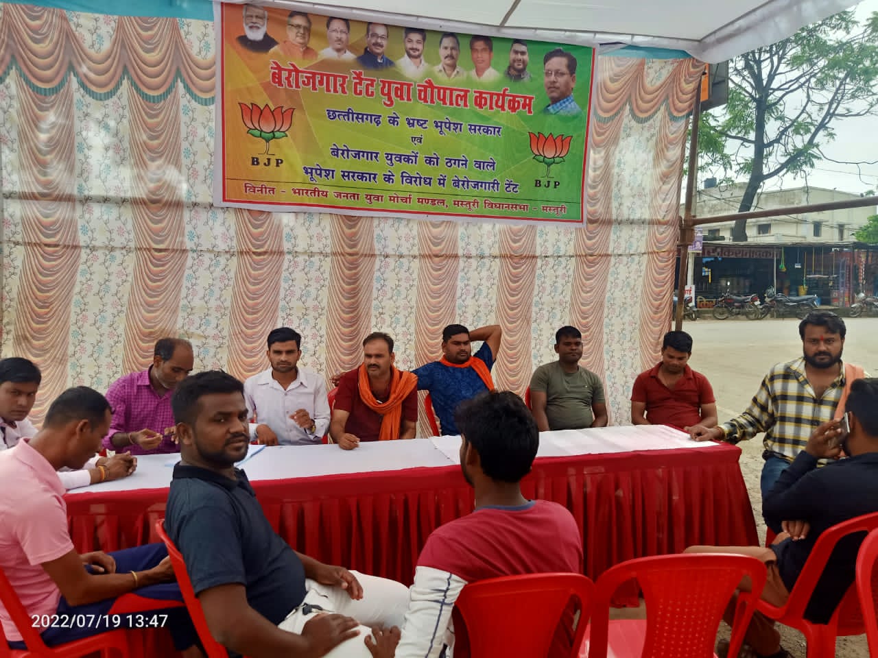 भाजपा युवा मोर्चा ने बेरोजगारी टेंट युवा चौपाल लगाकर किया भूपेश सरकार का विरोध प्रदर्शन